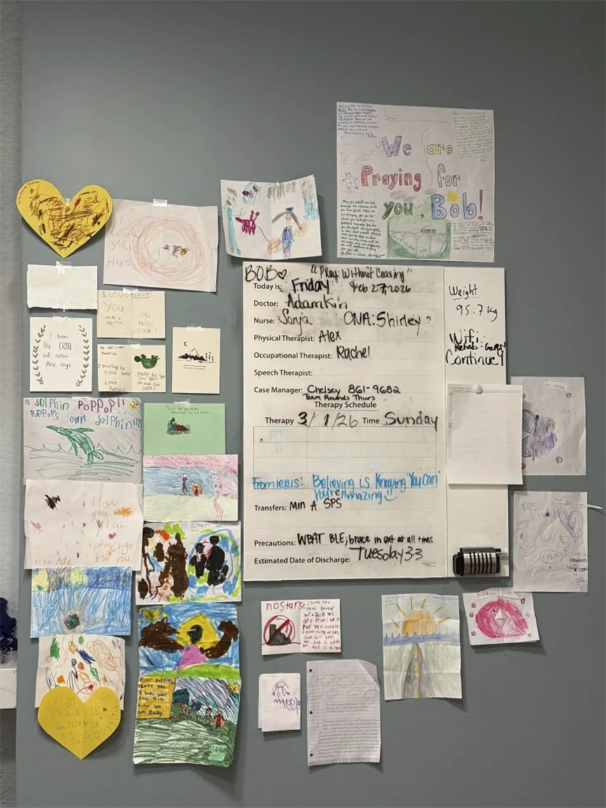 Personas, matrimonios y familias de mi iglesia comenzaron a escribir o llamar preguntando si podían pasar a visitarme. La mayoría preguntaba: “¿Puedo llevar algo?”. Algunos lo hicieron sin preguntar. Padres trajeron dibujos y tarjetas que sus hijos habían hecho con oraciones por mi recuperación y, a veces, con sabios consejos (¡no escaleras!). Verlos pegados en la pared era un recordatorio diario del cuidado de Dios.